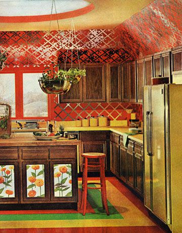 Earth tones were very popular in the 1960s, which gave way to such colors as canary yellow and avocado green appliances and cabinets. The look of the kitchen became even more streamlined as stoves and dishwasher were built right into the cabinets.