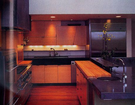 On the flipside of the farmhouse look was the professional kitchen. These kitchens came with all the bells and whistles and were often modeled after restaurant kitchens.